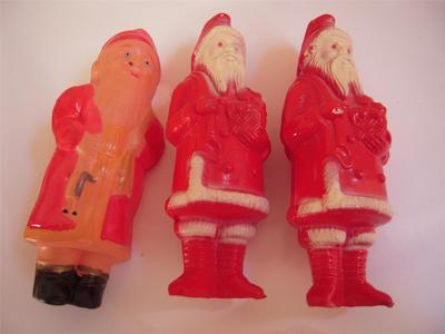 Title (ebay affiliate link): LOT OF 3 ANTIQUE CELLULOID SANTAS 2 MARKED IRWIN 1 IS A LIGHT 4" TALL