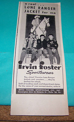 Title (ebay affiliate link): OLD ADVERTISING AD...[1947]..IRVIN FOSTER SPORTSWEAR With THE LONE RANGER JACKET