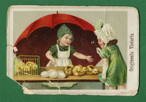 Title (ebay affiliate link): Original Victoria Sewing Machine Umbrella Kids Baby Chickens 1900s Trade Card