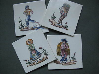 Set of Four Vintage Hand Painted Tiles From Portugal