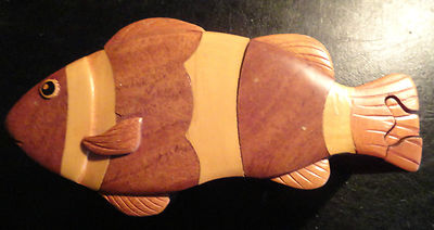 PUZZLE TRINKET BOX KOI GOLDFISH LARGE WOODEN BEAUTIFUL! WHEAT PENNIES TOO!