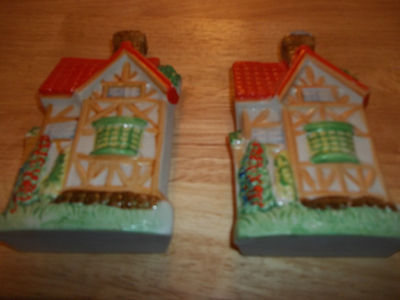 Pair Lot 2 Housefront Vintage Japan wall pockets orange shrubs chimney yellow