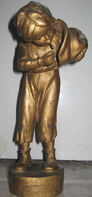 ANTIQUE BRONZE STATUE ENTITLED "A BEGINNER" BOY HIDING SMOKING