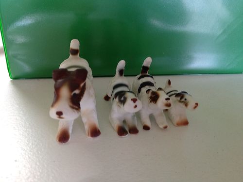 4 Porcelain Wire Hair Fox Terrier Dog Figurines
