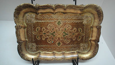 Vintage Italian FIRENZE Wooden Florentine Tray Ornamental Toleware