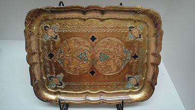 Vintage Italian FIRENZE Wooden Florentine Tray Decorated Toleware