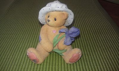 Bear figurine holding iris flower,numbered.