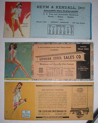 Title (ebay affiliate link): 3 old vintage good girl pin up art ink blotters Zoe Zert Earl Moran steel compan
