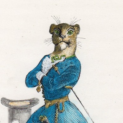 1842 GRANDVILLE - THE HAUGHTY LIONESS - Hand Colored Engraving