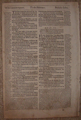 1616 Geneva Folio Black Letter Bible Leaf/HEBREWS 6-CONTROVERSIAL/MELCHIZEDEK!