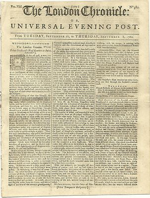 Title (ebay affiliate link): 1760 English newspaper THE LONDON CHRONICLE Sept. 16-18, 1760 Nice!