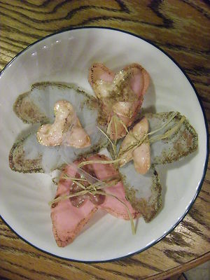 Title (ebay affiliate link): Primitive Valentine's Pink Blue Organdy Heart Bowl Fillers with Smaller Heart