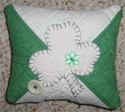 Vintage Cutter Quilt Pillow * Appliqued Shamrock * St Patrick's Day * Spring