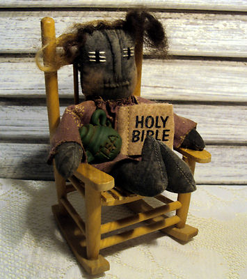 PRIMITIVE FOLK ART HANDMADE HANDCRAFTED BLACK ORNIE DOLL WOOD TOY CHAIR