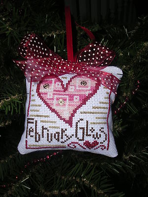 Completed Cross Stitch Bent Creek Valentine Ornament Silver Snaps Handmade