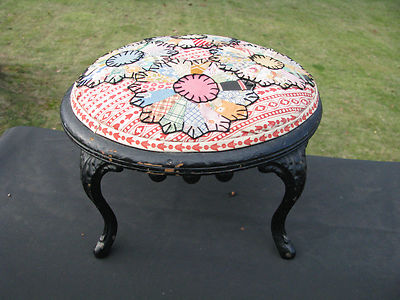 ANTIQUE VICTORIAN CAST IRON & WOOD FOOT STOOL