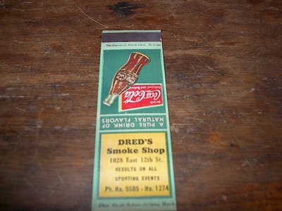1928 Coca Cola Coke Universal Match St Louis Dred's Smoke Shop