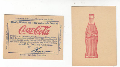 COCA-COLA COUPON FREE BOTTLE OF COKE 1920s THOMAS COUPON