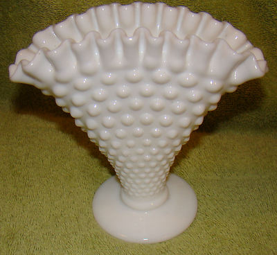 BEAUTIFUL White Milk Glass Hob Nail Ruffled Fan Vase