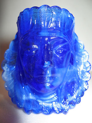 Title (ebay affiliate link): Cobalt blue milk slag glass toothpick holder Indian head chief / match american