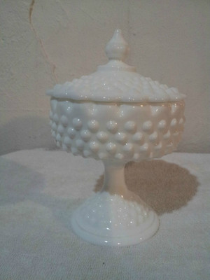 fenton hobnail milk glass candy dish