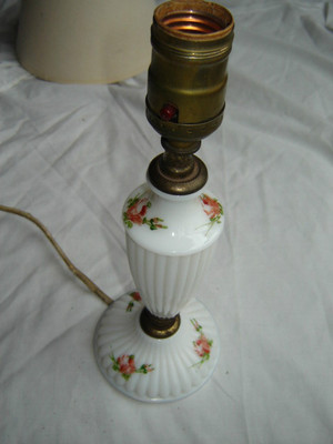 Title (ebay affiliate link): Small Vintage Antique White Milk Glass Lamp w/Hand Painted Roses ~ ADORABLE!!