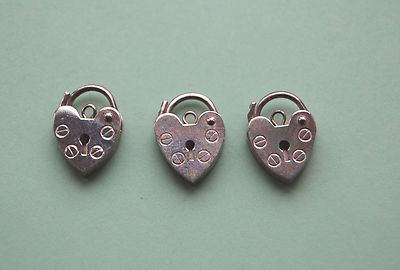 3 VINTAGE STERLING SILVER CHARM HEART PADLOCKS