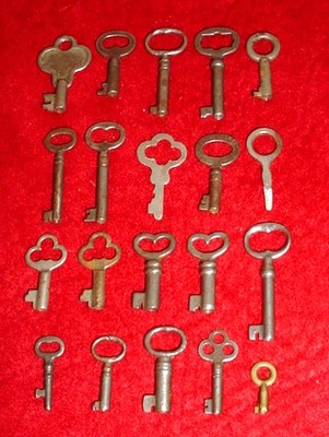 Title (ebay affiliate link): 20 Antique Skeleton Clock Cabinet Hollow Barrel Furniture Keys Collection