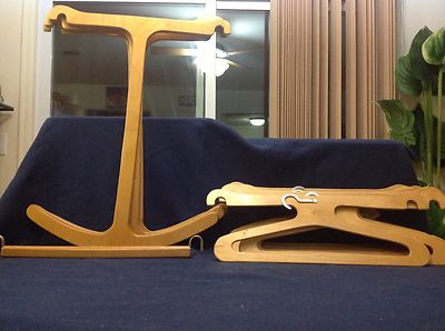 Title (ebay affiliate link): Lot of 21 antique wardrobe steamer trunk chest wooden hangers used long/short