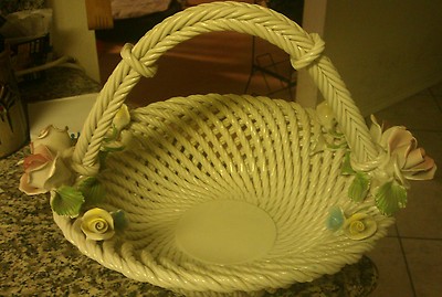 Title (ebay affiliate link): NUOVA CAPODIMONTE HANDARBEIT VINTAGE PORCELAIN ROSE BASKET MADE IN ITALY