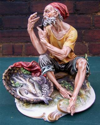 Title (ebay affiliate link): GIUSEPPE CAPPE CAPODIMONTE FISHERMAN SMOKING PIPE FIGURE # 277
