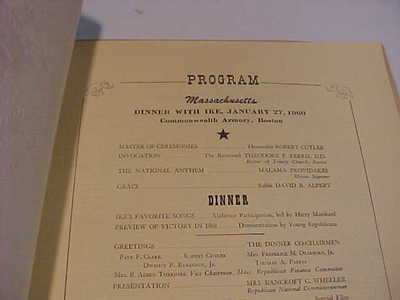 Dinner with Ike January 27, 1960 Boston Program with print of Lincoln