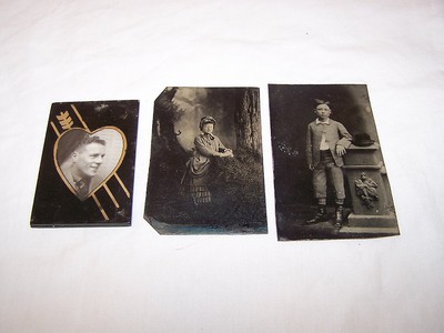 ^^ 3 ANTIQUE TIN TYPE PHOTOS - 2 CHILDREN & YOUNG MAN