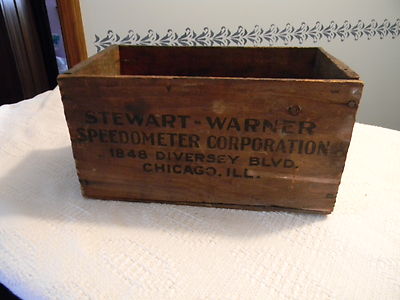 VINTAGE STEWART WARNER SPEEDOMETER GAUGE ADVERTISING WOOD SHIPPING BOX NOT SIGN