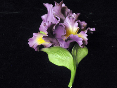CAPODIMONTE PURPLE IRIS FLOWER WITH STEM AND LEAVES