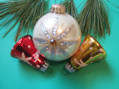 3 Vintage Mercury Glass Mica Star Bell Christmas Ornament-West Germany