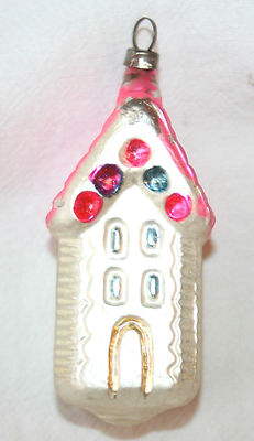 Title (ebay affiliate link): 1920s Glass Ginger Bread Cottage. Detailed, Very Nice German Ornament.