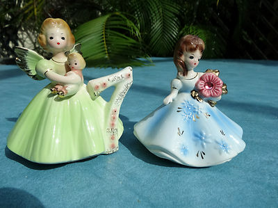 Title (ebay affiliate link): 2 JOSEF ORIGINALS: BIRTHDAY ANGEL 7 GREEN DRESS & GIRL HOLDING FLOWER IN BLUE