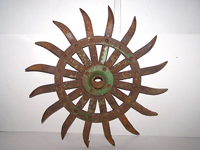 VINTAGE 18" SPIKED ROTARY HOE STEEL WHEEL INDUSTRIAL JOHN DEERE FARM CAST IRON