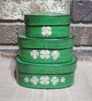 Title (ebay affiliate link): Primitive Irish Shamrocks Small Shaker Boxes ST. PATRICK'S DAY Hp Kelly Green