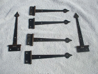 Set of 6 Early American Style Hinges Hand Wrought Look 1970s Repros Cabinet