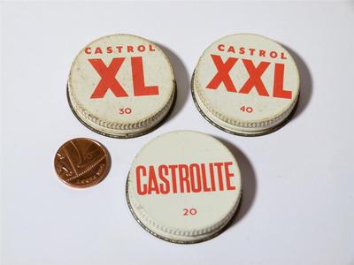 3 Vintage CASTROL XXXL - XL - CASTROLITE Screw Lids Advertising Bottle or Tins