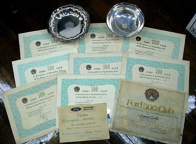 Title (ebay affiliate link): 1963 -73 FORD 300/500 Club AWARD Certificates & 2 SILVER Bowls/ CANDY DISH