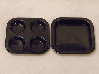 Vintage Toy Childs Tin Granite Ware Play Dishes Muffin & Sheet Pan - Mini 4 inch