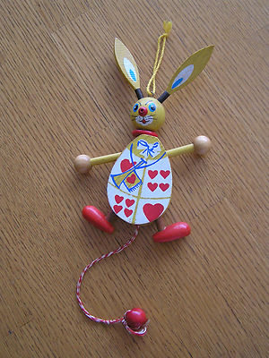 Vintage Wooden Pull String Easter Bunny, FAMO Austria.