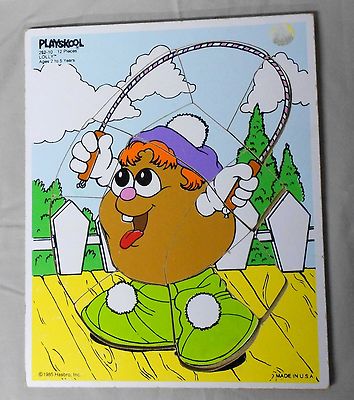 Title (ebay affiliate link): 1985 PLAYSKOOL SESAME STREET LOLLY POTATO HEAD WOOD BOX PUZZLE- 12 PCS