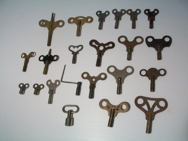Title (ebay affiliate link): 22 PIECE LOT OF ANTIQUE VINTAGE MODERN CLOCK KEYS $1 NR