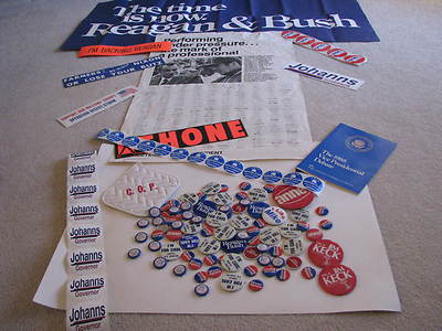 Title (ebay affiliate link): GOP Reagan Bush Nixon campaign posters plus Nixon Ford Agnew Hagel & other pins