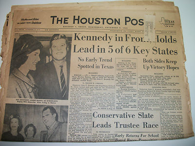 Title (ebay affiliate link): The HOUSTON POST John F Kennedy JFK Presidential Election November 9, 1960