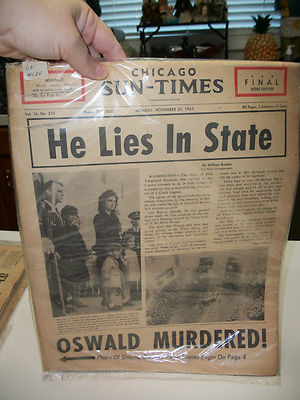Title (ebay affiliate link): Chicago Sun Times - John F Kennedy JFK Assassination November 25, 1963